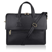 Leather Laptop Bag - Double Flap - 14 Inch / Black