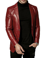 Men Genuine Leather Blazer Sport Coat - HL 58 - Maroon / XS / Satin