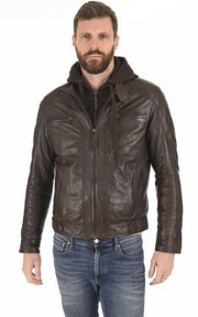 Men Hoodie Leather Jacket - HL 02 - XS / Satin